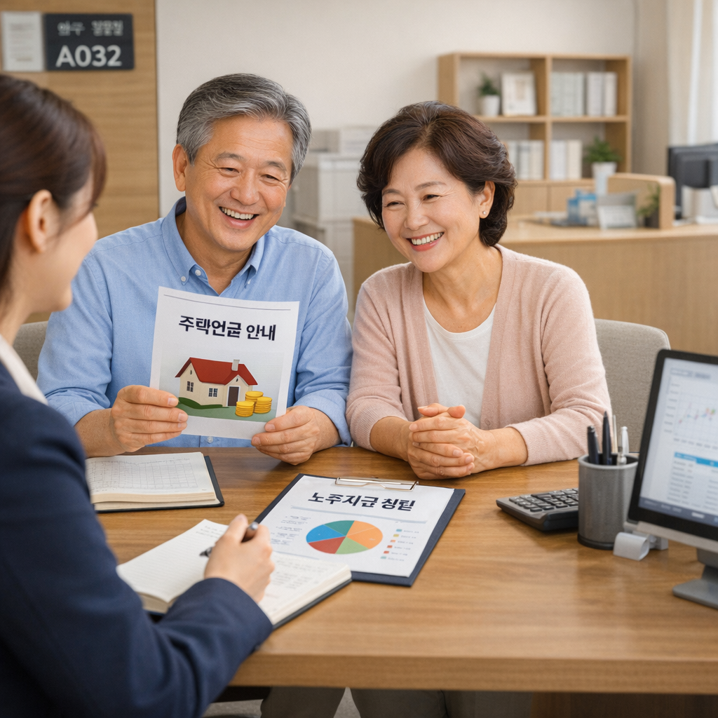 주택연금과 노후 생활비를 고민하며 서류를 살펴보는 시니어 부부